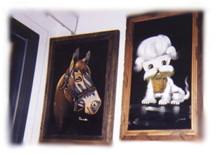 Horse’s head. No doubt terrified by that famous scene in the Godfather, our horse’s head on black velvet by Landa is bridled and ready to ride.