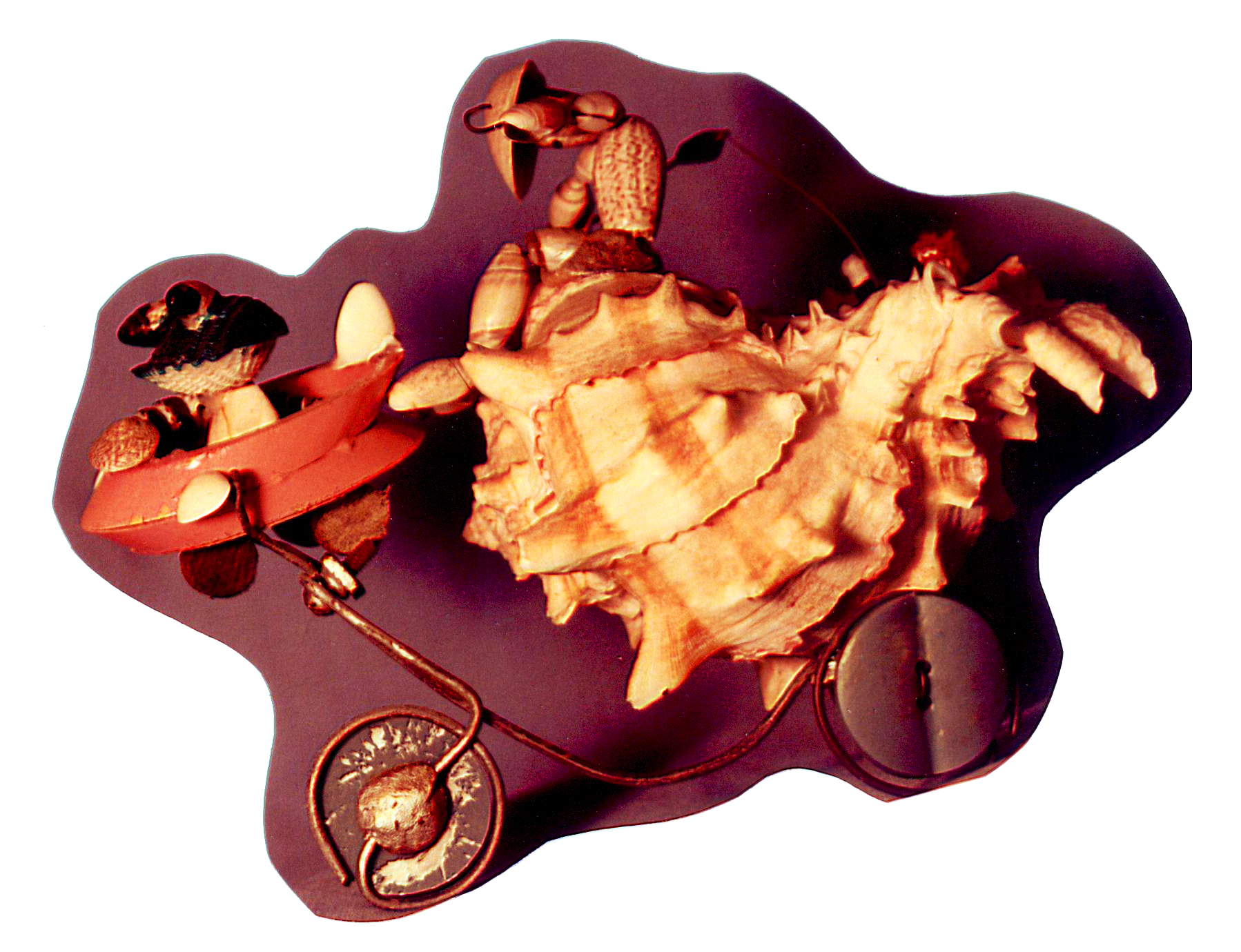 Providing unique and whimsical transportation plus the best seats in the house, we present Mr. Toad and the Fearless Warrior. These unique shell sculptures were discovered sitting side by side together in a local thrift store and have never been separated. They have a cooperative and successful working relationship as well as a deep respect for one another. We have promised them they will be together forever. We’ll ride in on the toad and you can hitch with the warrior in his chariot.
