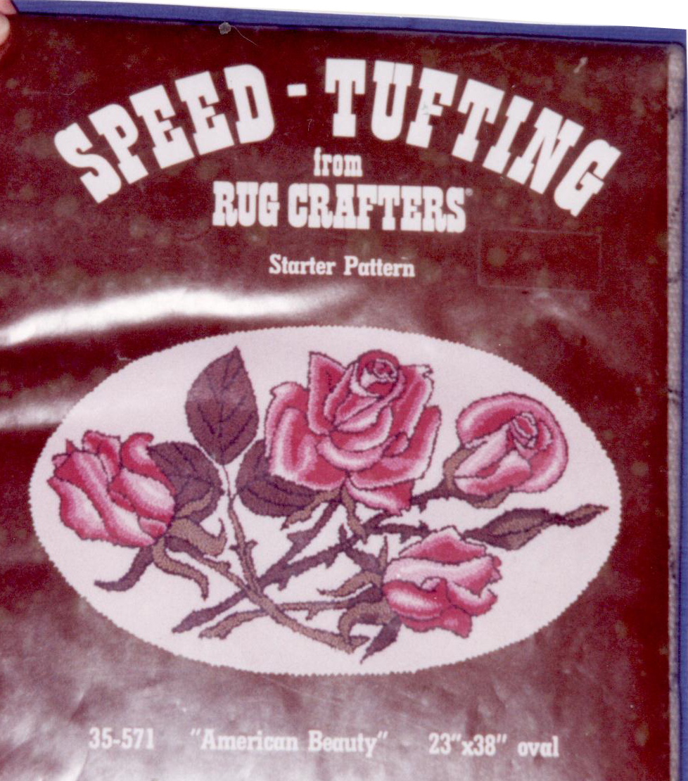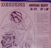American Beauty. The picture speaks for itself. Surely too beautiful to be placed underfoot, it would make an exquisite wall hanging. Copyrighted in 1976, we wonder if anyone has finished this kit. If you have please inspire us with your accomplishment.
