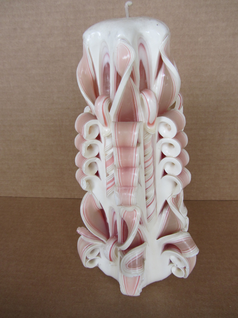 Pink and White Candle with swirls and twirls just for females. Be forewarned that this is a necessary warning “Do not light or burn this candle” because that’s not what it’s about. It was made to be gazed upon, simply gazed upon. So keep it flame free and stare at it whenever inspiration is needed.