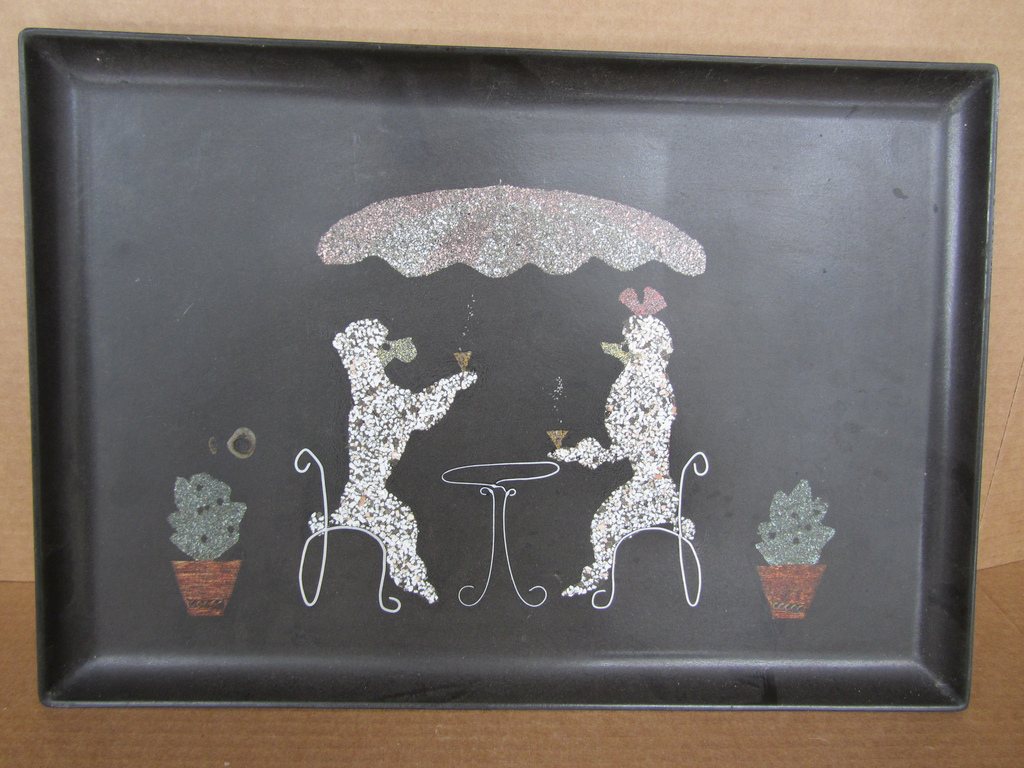Three Poodle Trays, each with a scene from a story book poodle romance again possibly taking place in Paris. Wow! Let me take the place of the female poodle, so what if my suitor were a male poodle? I could forget about this with all the champagne and delicious food. The romance would unlikely work but who knows and what a wonderful story to tell.