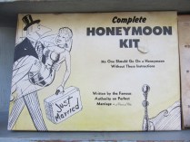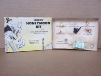 Honeymoon Kit. Wow! What a find brought to us by Nina Nightly. She so cleverly and artfully brings us every part of falling in love, making love (unfortunately including a rubber with an unknown small opening), and the following inevitabilities – that included getting pregnant, getting married, going on a honeymoon, and in nine months having a baby. Certain things don’t change over time. So check that rubber for holes.