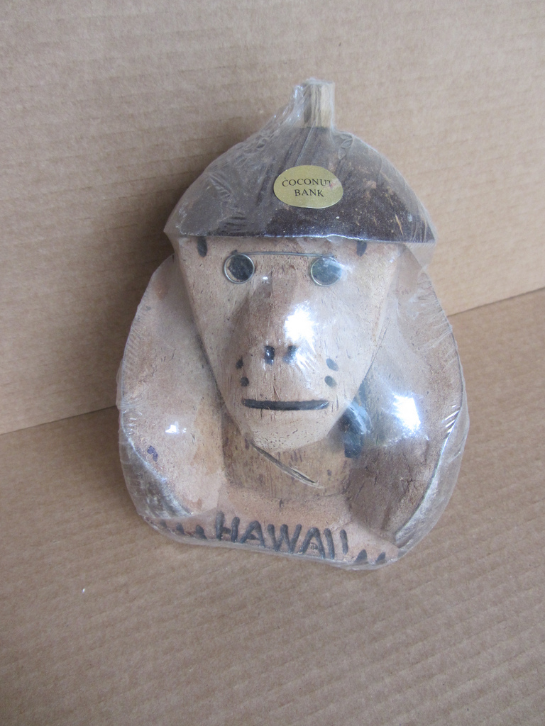Hawaii Coconut Bank. Hawaii a place where one always needs money for one thing or another, how sad but how true. So here’s a place to put your coins and keep them until absolutely needed and then break it apart as it has no bottom opening. Big surprise? I don’t think so. And be sure to watch over this bank or you’ll find it empty due to a your trusted family member’s emergency.